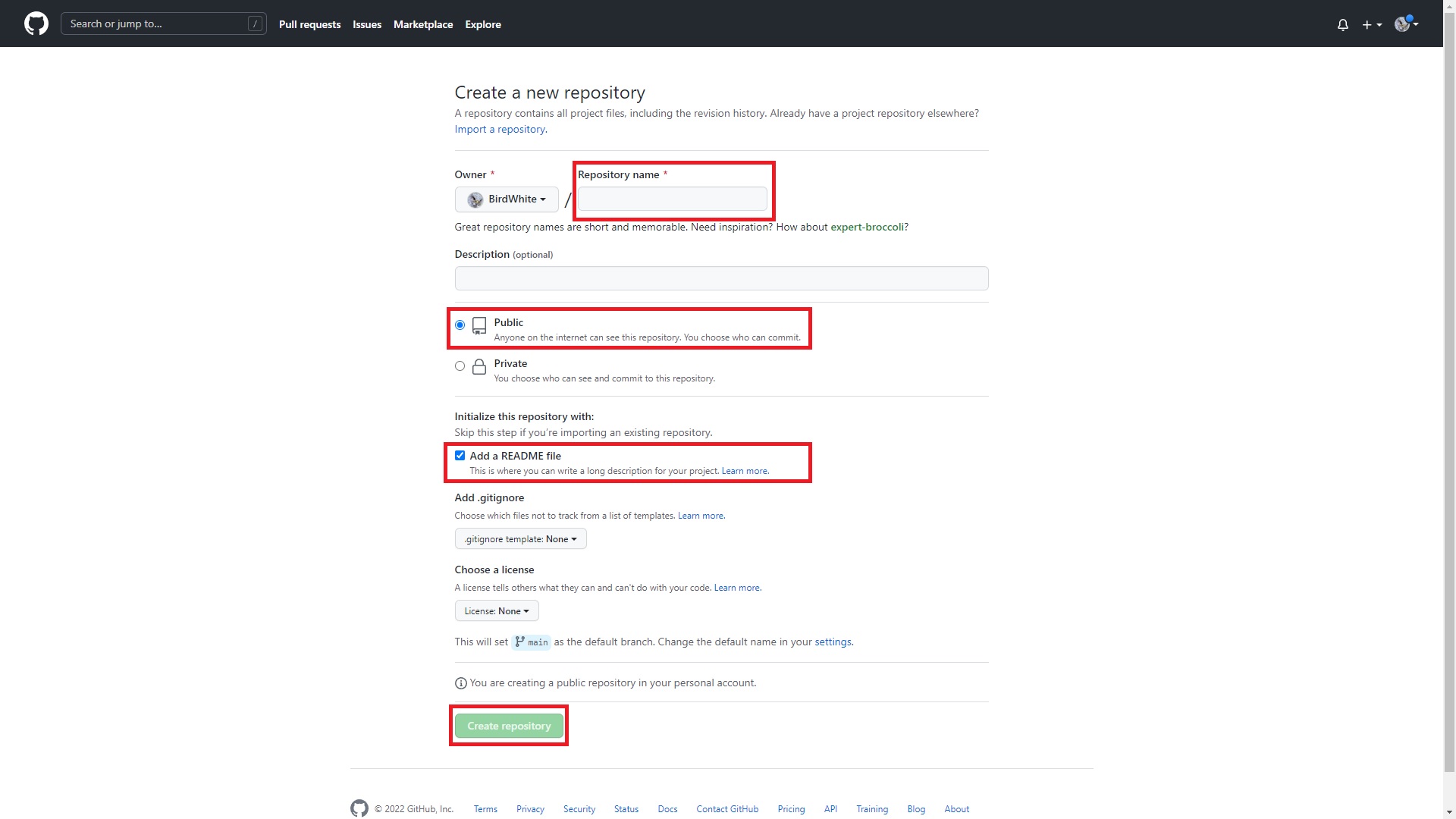 그리고 Add a README file 을 체크해주시고 리포지터리를 만듭니다.